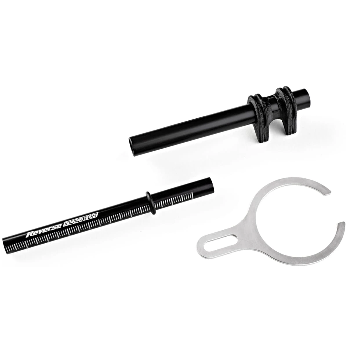 Elke motorrijder die de voorkeur geeft aan een stalen schokdemper op zijn motor weet dat het soms een beetje lastig is om de juiste sag te bepalen. Daarom heeft Reverse dit hulpmiddel ontwikkeld, dat aan de zijkant van de schokdemper wordt bevestigd en aan de hand van een schaalverdeling gemakkelijk af te lezen is hoeveel veerweg er wordt gebruikt of hoe diep de schokdemper doorhangt.